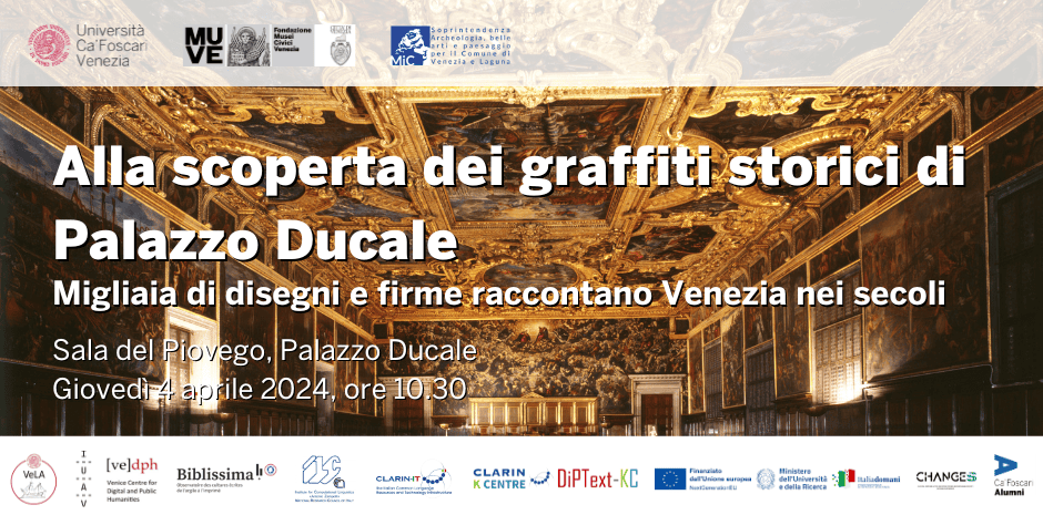 Ora, il gruppo di ricerca documenta l’edificio più emblematico, con il segmento VeLA-Palazzo Ducale, dedicato appunto a Palazzo Ducale. Il Palazzo conta circa 20mila graffiti dei quali 9mila già in fase di studio, ma molti altri potrebbero essere scoperti e con essi nuovi frammenti della storia cittadina.