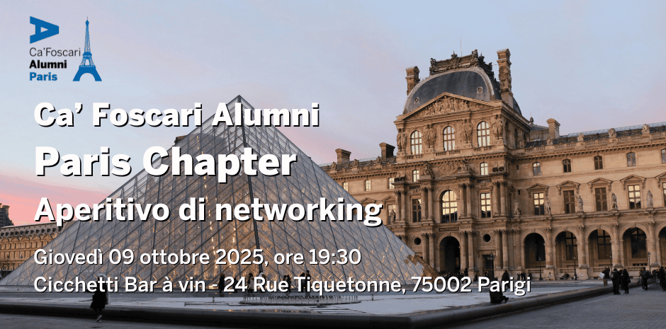 L'invito è esteso a tutti gli ex studenti di Ca' Foscari, sia a chi si è appena trasferito, sia a chi vive a Parigi da tempo. Non perdere un'occasione per creare nuove connessioni e parlare di progetti futuri in un'atmosfera semplice e piacevole come quella di un aperitivo!