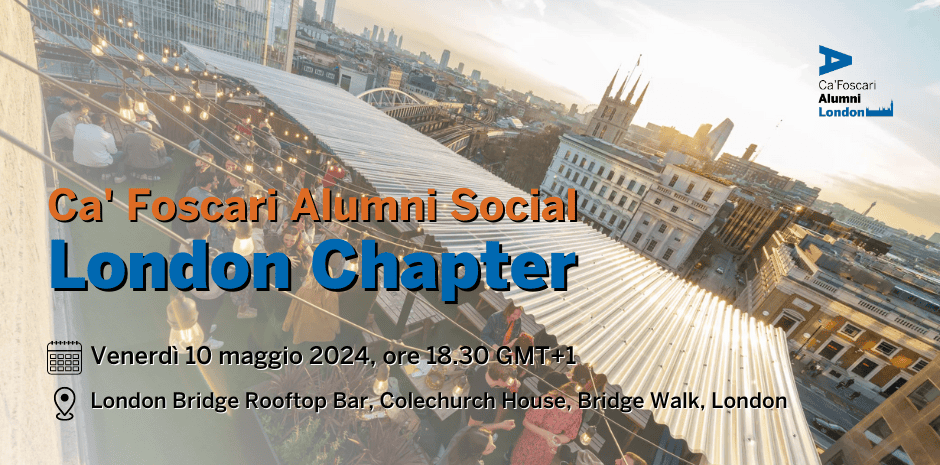 Venerdì 10 maggio 2024 il Chapter di Londra organizza un incontro di networking: un'occasione per passare assieme una serata cafoscarina pensata per conoscere altri Alumni, condividere esperienze e raccogliere nuovi stimoli.