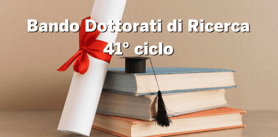 È online il bando di concorso per l'ammissione ai Corsi di Dottorato 41° ciclo anno accademico 2025/2026. Il termine per la presentazione della domanda di ammissione è mercoledì 7 maggio 2025 ore 13.00 (ora italiana)