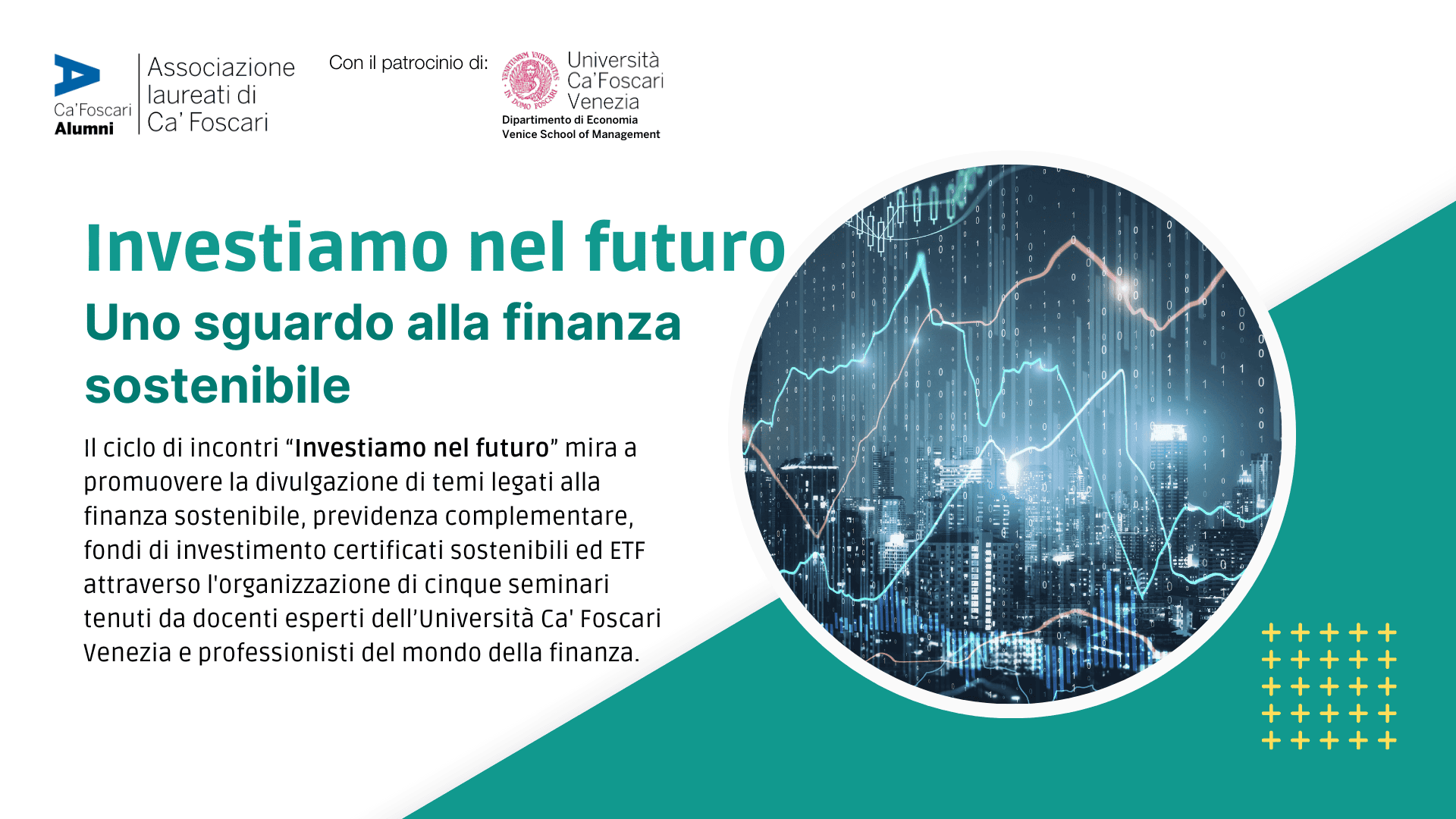 "Investiamo nel futuro. Uno sguardo innovativo sulla finanza sostenibile" è un ciclo di incontri organizzato dall'Associazione Ca' Foscari Alumni grazie al contributo di Banca d'Italia.